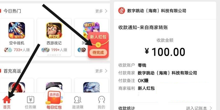 首页点新人红包,按照系统提示操作,领取收益(领取达人任务红包白嫖100元,简单非常快,秒到账微信)