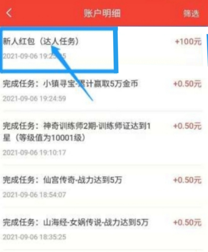 (禁止充值)把达人任务领取了,账户明细有达人任务就可以提交了(达人红包100元,你自己提就行,不作为任务要求)