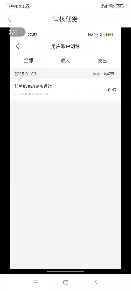 完成1个任务。我的钱包明细截图。