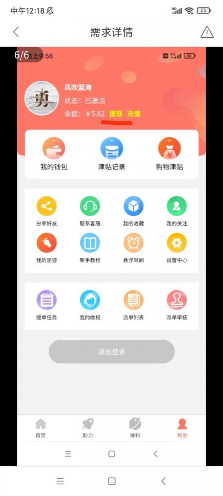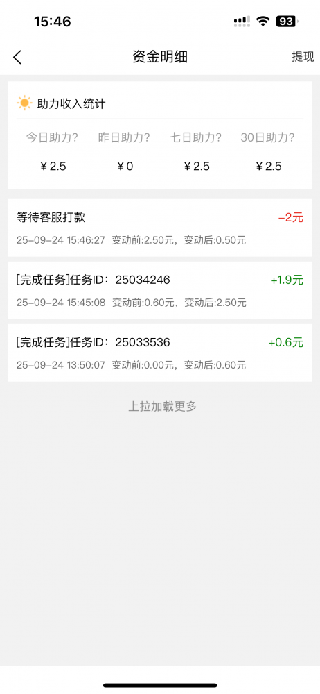 做任务提现一次(1元起提)。我的页面,资金明细截图。